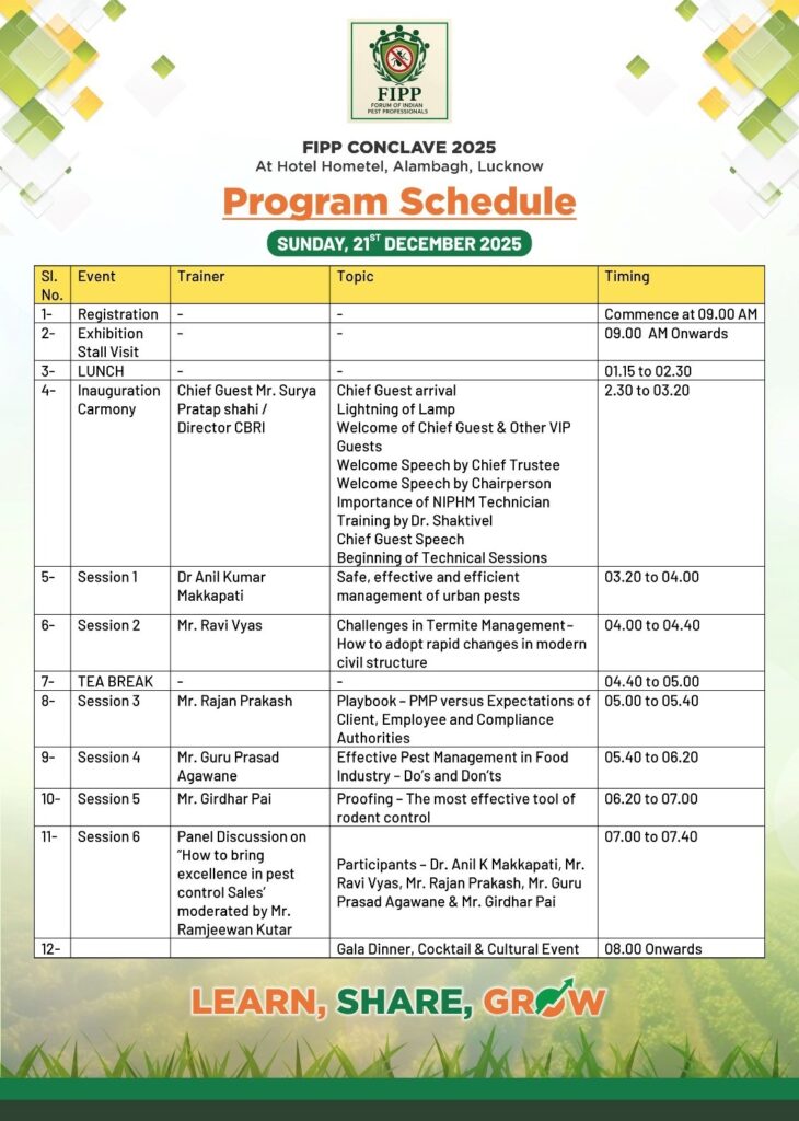 I recently had the opportunity to present at the Federation of Indian Pest Professionals (FIPP) Conclave 2025, held at Hometel, Lucknow, on 21 December 2025.