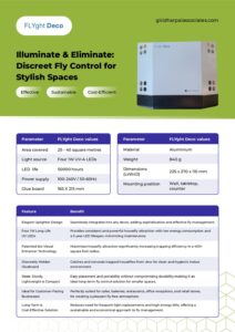 Building on the success of the FLYght range, known for low electricity consumption and long-lasting UV LEDs, the FLYght Deco is ideal for owners of small spaces seeking effective fly management.